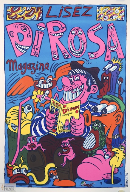 Affiche-Estampe Hervé DiRosa, Editions WM 1986, "Lisez Di Rosa Magazine" (CR DiRosa Graphic), Lithographie sur vélin fort, signée dans la planche, Très bon état