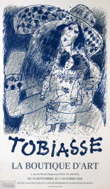 Affiche Théo Tobiasse, exposition La Boutique d'Art, Nice 1978, "Maternité" création originale, Lithographie Chave sur Vélin léger, Très bon état