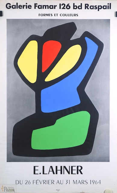 Affiche d'exposition d'Emile Lahner, Galerie Famar, Paris 1964, Sérigraphie Duval sur papier fin
