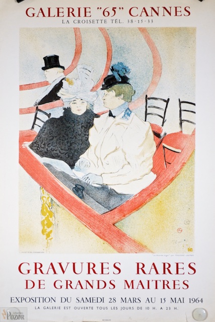 Affiche de l'exposition "Gravures rares de grands maitres", Galerie 65, Cannes 1964, d'après Henri de Toulouse-Lautrec "La grande loge", 1897Lithographie Mourlot / Deschamps sur vélin léger (CR Mourlot Affiches)