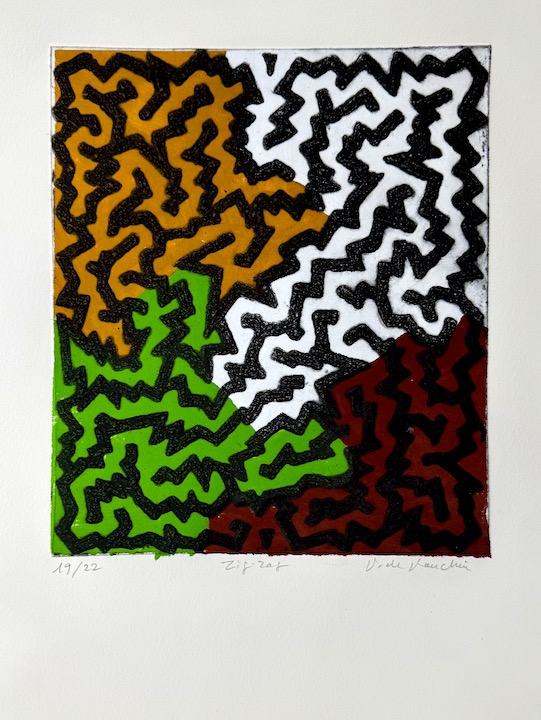 France de Ranchin "Zig-zag"Gravure carborundum 25x33 sur vélin fort 33x50 cm, signée et numérotée sur 22 ex à la main par l'artiste