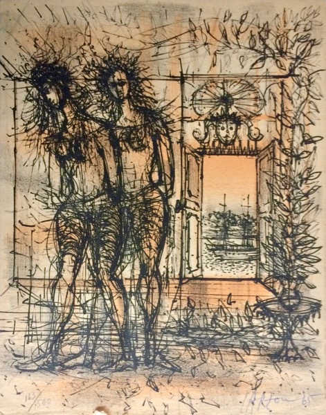 Carzou "Couple avec vue", 1965Lithographie originale sur vélin fort, numérotée 163/500 et signée main,vœux manuscrits au dos