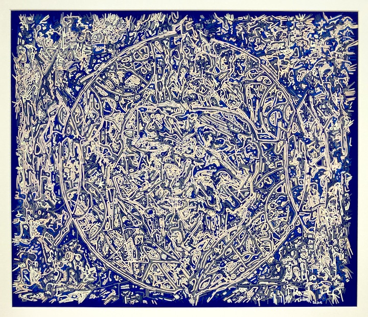Artiste français d’origine Kabyle et Tchécoslovaque, son travail visuel est comparable par plusieurs aspects à son univers musical : très saturé, on y croise de nombreuses influences disparates qui cohabitent par une intense compression. Dès ses premières expositions ses travaux ont très vite été reconnus par plusieurs figures du Monde de l’Art comme Agnès b, l’Institut Français, David Lynch, la Mitsubishi Pencil ou encore la revue Hey ! Ses œuvres explorent des principes de saturation, de contrepoint et de compression hérités de sa pratique musicale. À travers ses dessins et peintures, il propose un langage visuel dense et en perpétuelle recomposition, où motifs et fragments se déploient comme des parties d’un ensemble plus vaste.
