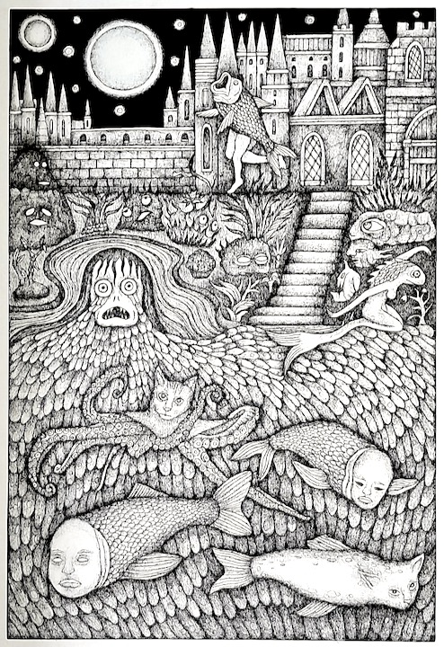Dans une poésie acide et grotesque, expressionniste et silencieuse, politique et cauchemardesque, narrative et elliptique, son travail n’est pas décoratif. La projection sur un support traditionnel d’une certaine violence des rapports humains rend soudain perceptible une réalité qui, dans un monde saturé d’écrans et d’images autrement plus violentes, est de fait invisibilisée.