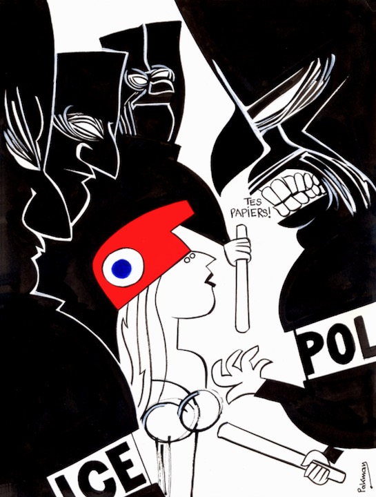Exposition de caricatures et dessins de presse actuels, en tradition culturelle de la caricature française, avec DuBouillon, Sam Gross (hommage), Philippe Krokus, Mougey, Pakman et les éditions indispensables de Yves Frémion.