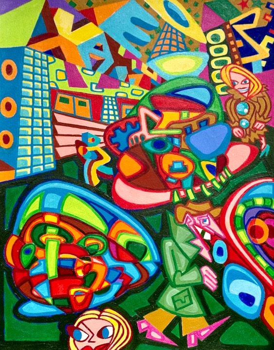 Captain Cavern, Détective, acrylique sur papier 30x37
