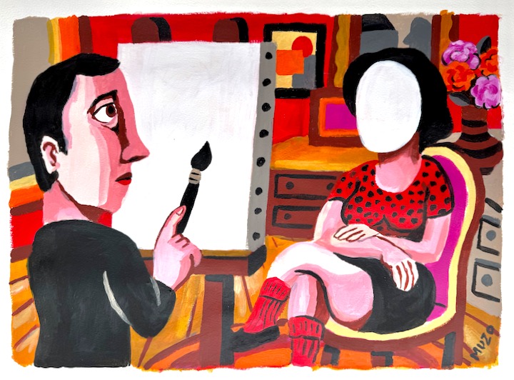 Muzo, "Je vais faire ton portrait", 2025Acrylique sur papier d'art, signée à la main par l'artiste