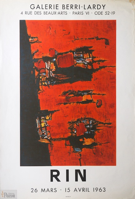 Affiche Nicolas RIN, exposition Galerie Berri-Lardy, Paris 1963, Lithographie Mourlot sur vélin fort, trace et petit pli coin, Bon état