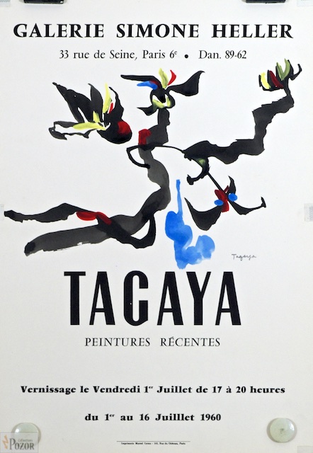 Affiche Itoku Tagaya, exposition Galerie Simone Heller, Paris 1960, Création originale, Lithographie Cornu sur vélin léger, traces légères, Bon état