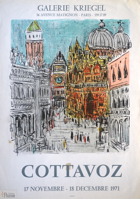 Affiche André Cottavoz, exposition Galerie Kriegel, Paris 1970, "St-Marc à Venise" création originale 71 (CR Mourlot Affiches), Lithographie Mourlot sur vélin léger, petites traces dont adhésif, Bon état