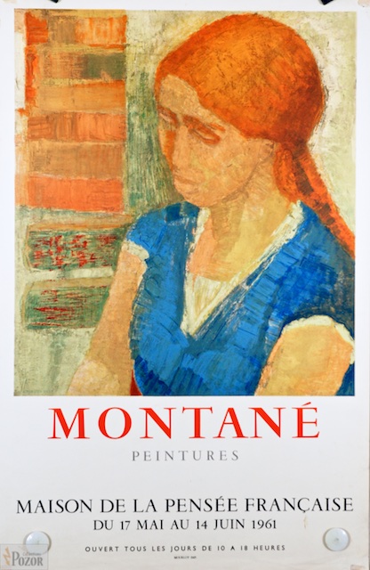Affiche Roger Montané, exposition Maison de la Pensée française, Paris 1961, Lithographie Mourlot-Sorlier sur vélin léger, traces d'adhésif, petites taches, Bon état
