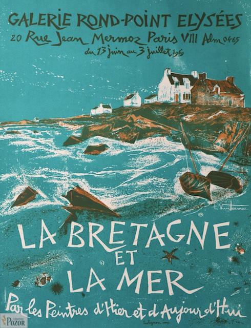 Affiche Louis Vuillermoz, exposition La Bretagne et la Mer, Galerie Rond-Point Elysées, Paris 1969, Création originale, Lithographie Trotignon sur vélin léger, Très bon état