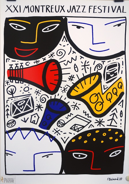Affiche François Boisrond, 21e Festival de Jazz de Montreux (Suisse) 1987, "Jazz" Création originale, tirage de suite, Sérigraphie Uldry sur couché fort, Très bon état