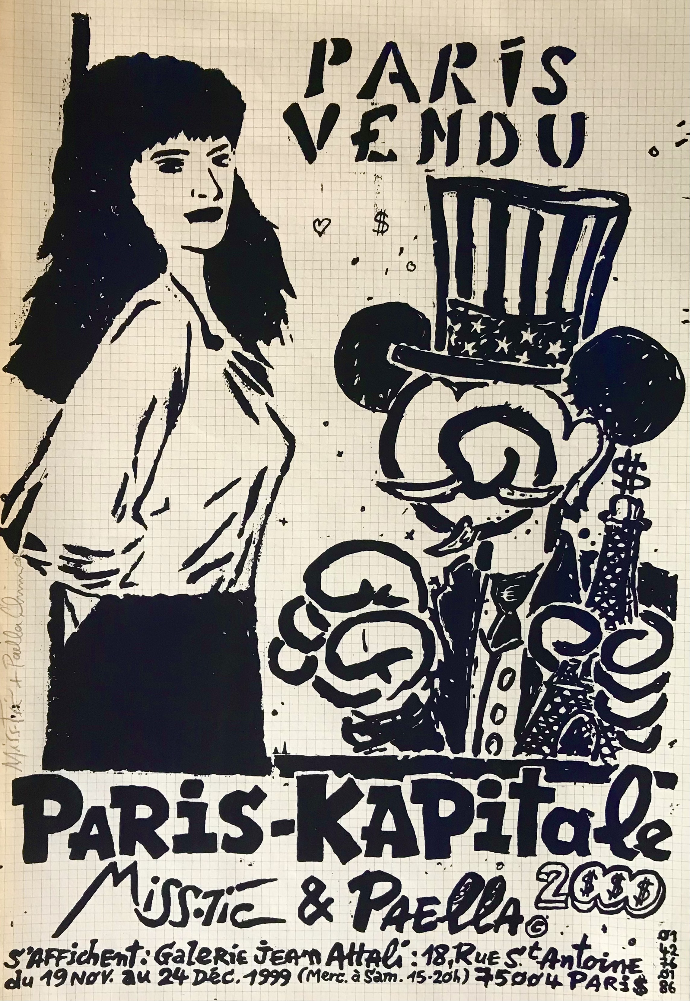 Petite affiche Miss Tic et Paella, exposition Paris Kapitale, Galerie Attali, Paris 1999,