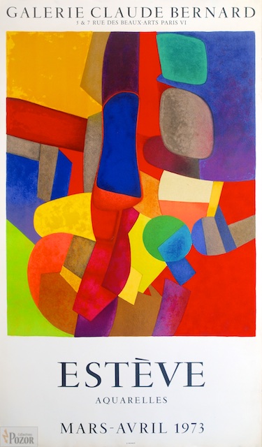 Affiche Maurice Estève, exposition Aquarelles, Galerie Claude Bernard, Paris 1973, "Toccableu 2" création originale (CR Moestrup, Mourlot Affiches), Lithographie Mourlot sur Vélin léger, Très bon état