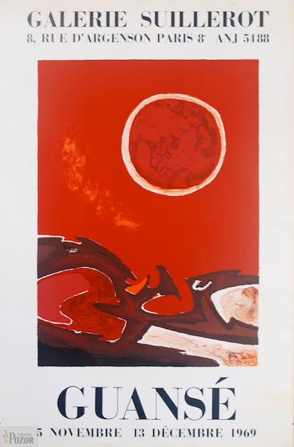 Affiche Antonio Guansé, exposition Galerie Suillerot, Paris 1969, "Lune rouge", création originale, Lithographie sur Vélin léger, petites traces, Bon état