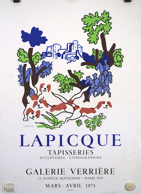 Affiche Charles Lapicque, exposition Tapisseries, Galerie Verrière, Paris 1971, "Départ pour la chasse" création originale (CR Balanci 440), Lithographie Mourlot sur vélin léger, traces légères, Très bon état