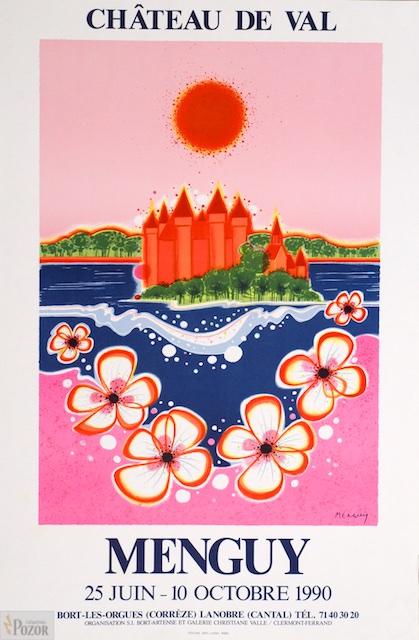 Affiche Frédéric Menguy, exposition Château de Val, La Nobre (Cantal) 1990, Lithographie Arts-Litho sur vélin léger, Très bon état