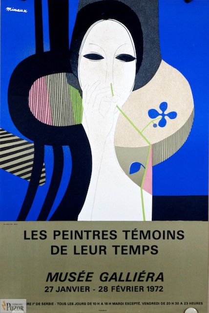 Affiche André Minaux, Les Peintres Témoins de Leur Temps, Musée Galliera, Paris 1972, "Femme au trèfle bleu", création originale (CR Mourlot Affiches), Lithographie Mourlot-Sorlier sur vélin léger, petites traces, Très bon état