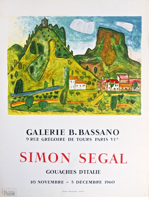 Affiche Simon Segal, exposition "Gouaches d'Italie", Galerie Bassano, Paris 1960,