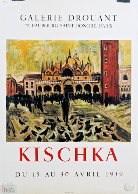Affiche d'exposition de Isis Kischka, Galerie Drouant, Paris 1959, "Place St-Marc à Venise", création originale, Lithographie Mourlot sur vélin léger (CR Mourlot Affiches)
