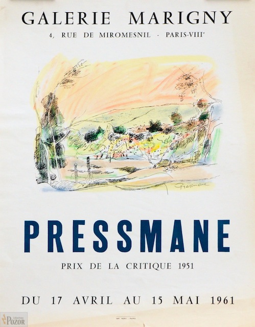 Affiche d'exposition de Joseph Pressmane, Galerie Marigny, Paris 1961Lithographie Nory sur vélin léger