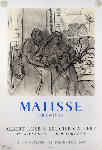 Affiche d'exposition de Henri Matisse "Drawings", Loeb & Krugier Gallery, New-York 1967,d'après "Maternité" 1939Lithographie Mourlot sur vélin léger (CR Mourlot Affiches)
