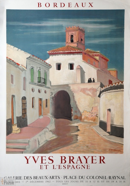 Affiche Yves Brayer, exposition Galerie des Beaux-Arts, Bordeaux 1962 L'espagne (CR Mourlot Affiches) Lithographie Mourlot sur vélin léger, Froissements, Bon état