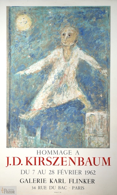 Affiche Jésékiel Kirszenbaum, exposition d'hommage, Galerie Karl Flinker, Paris 1962, Lithographie Mourlot sur Vélin léger, entoilée, Très bon état