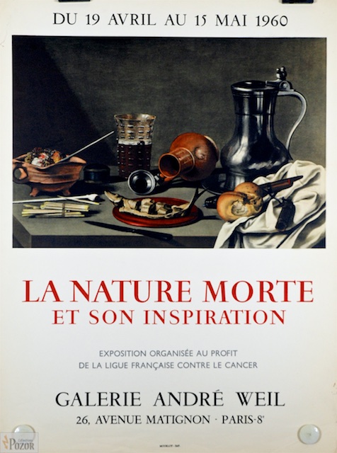 Affiche de l'exposition "La nature morte et son inspiration", Galerie André Weil, Paris 1960,d'après Pieter Claesz, "Nature morte au déjeuner", c1630Lithographie Mourlot sur vélin léger (CR Mourlot Affiches)