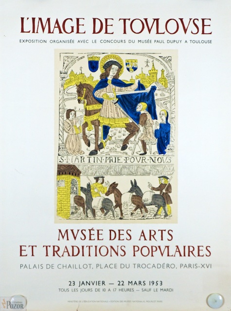 Affiche d'exposition "L'Image de Toulouse", Musée des Arts et Traditions Populaires, Paris 1953, d'après le bois gravé "St-Martin, prie pour nous" (anonyme) Tours, vers 316Lithographie Mourlot sur vélin léger (CR Mourlot Affiches)