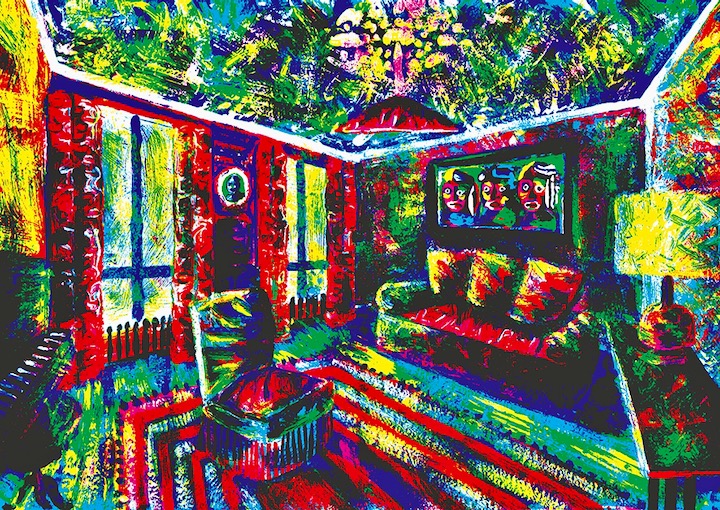 Olivier Allemane, "Salon 2"Sérigraphie 37x51 sur couché fort 45x64 cm, signée à la main par l'artiste