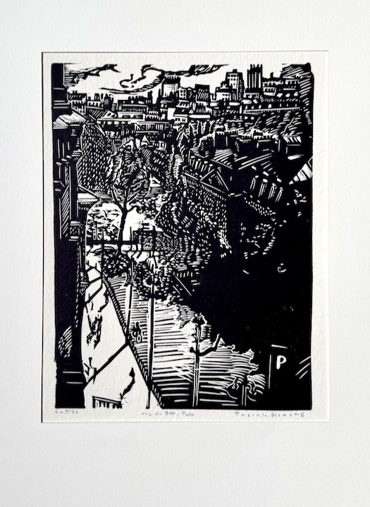 Pascale Hemery "Vue du BHV"Linogravure noire sur vélin fort 26x38 cm, signée et numérotée EA à la main par l'artiste