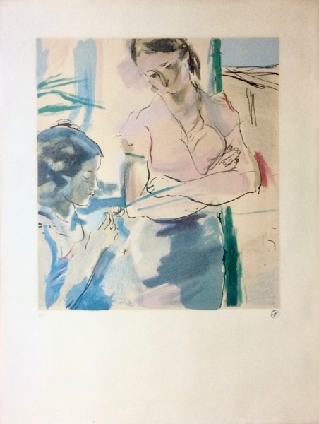 Jean Launois "La Conversation",Lithographie Mourlot 1971 sur vélin fort, d'après l'œuvre originale de 1934, numérotée 2/200 avec monogramme successionEditée pour la retrospective de l'artiste au Musée de Narbonne en 1971