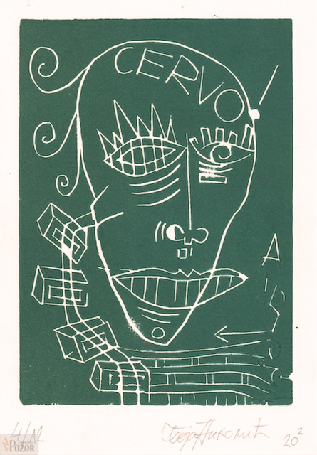 Bojan Nikolic "Réponse à Buffet" Estampe originale linogravée sur vélin fort, signée main et numérotée sur 12 exemplaires, cachet à sec éditeur, Editions Pozor 2020