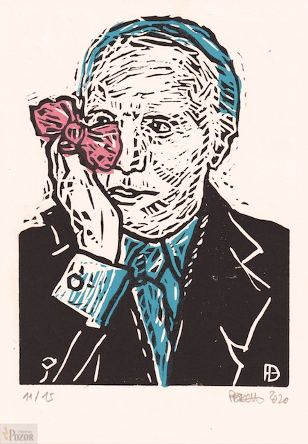 David Perchey "Réponse à Ernst" Estampe originale linogravée sur vélin fort, signée main et numérotée sur 15 exemplaires, Ecachet à sec éditeur, Editions Pozor 2020