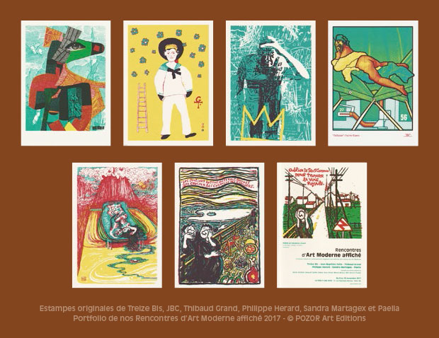 Affiche des Rencontres Pozor 2017 à la Villa des Arts et estampes individuelles signées et numérotées des artistes, également disponibles