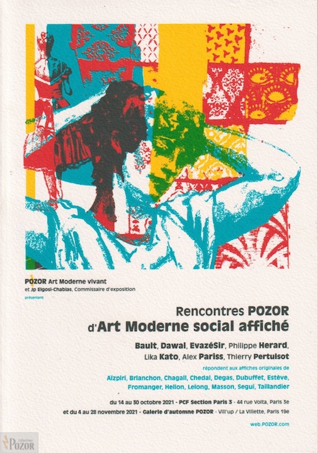 Portfolio d'estampes des Rencontres POZOR 2021 d'Art Moderne social affiché au PCF et à la Galerie Pozor,