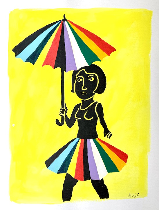 Muzo, "Le parapluie", 2025Acrylique sur papier d'art, signée à la main par l'artiste
